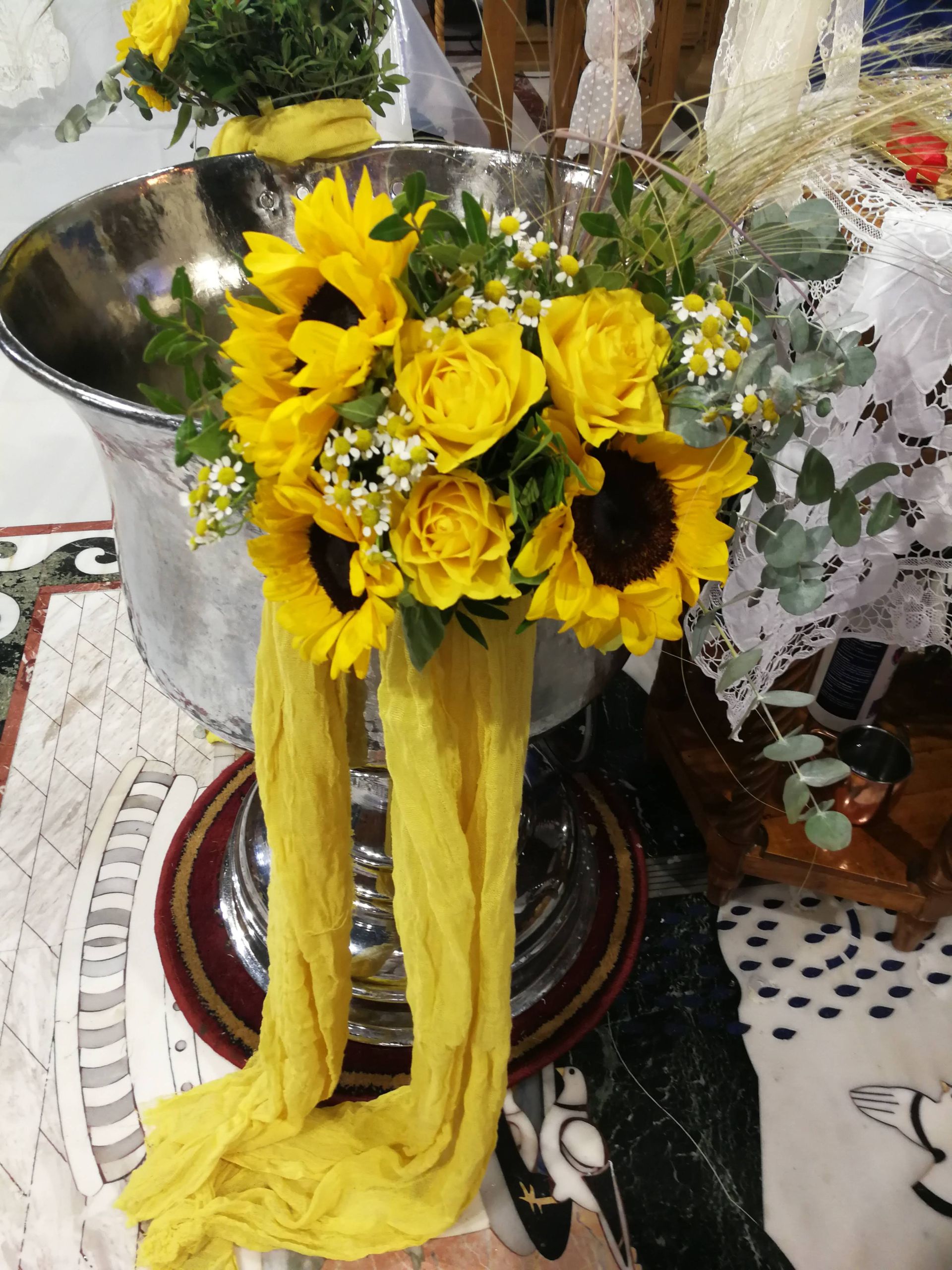 - Στολισμός κολυμπήθρας με φρέσκα λουλούδια, υφάσματα και κορδέλες